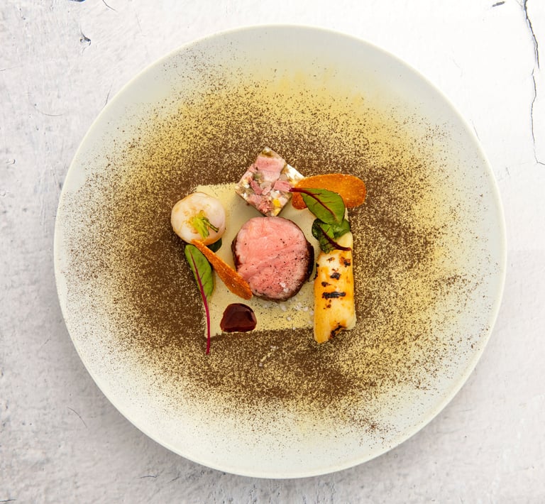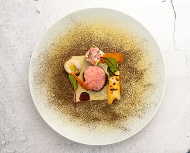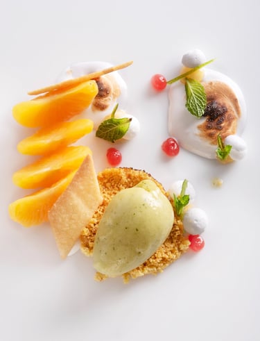 Dans l'assiette, la tradition rencontre l'innovation : des produits locaux et de saison sont métamorphosés par la créativité et le savoir-faire de Vincent Gardinal.
